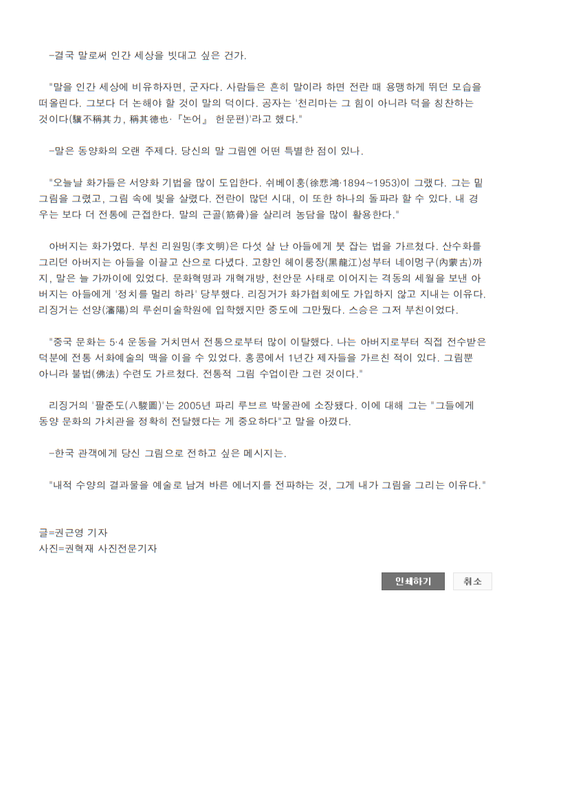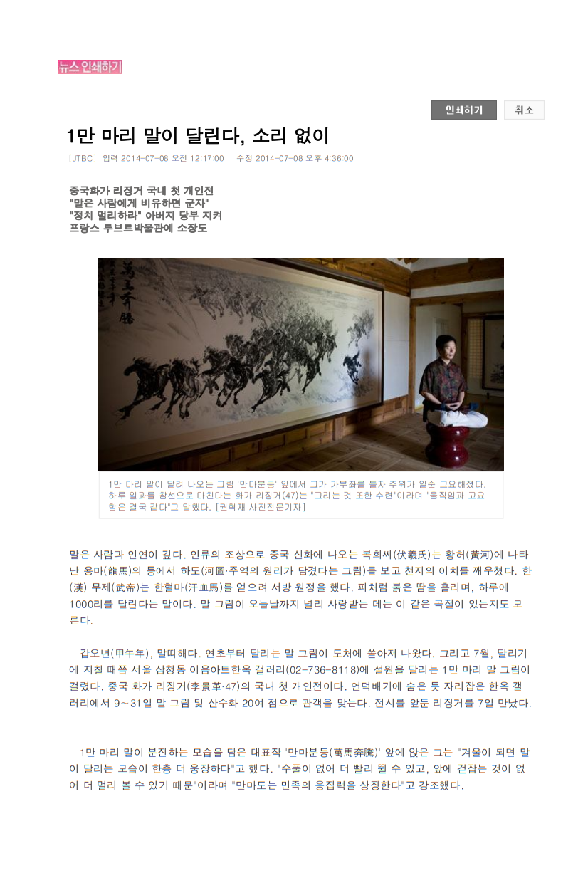 韓國《JTBC》萬馬奔騰,無聲無息 (2014年7月首爾畫展中央日報報道)